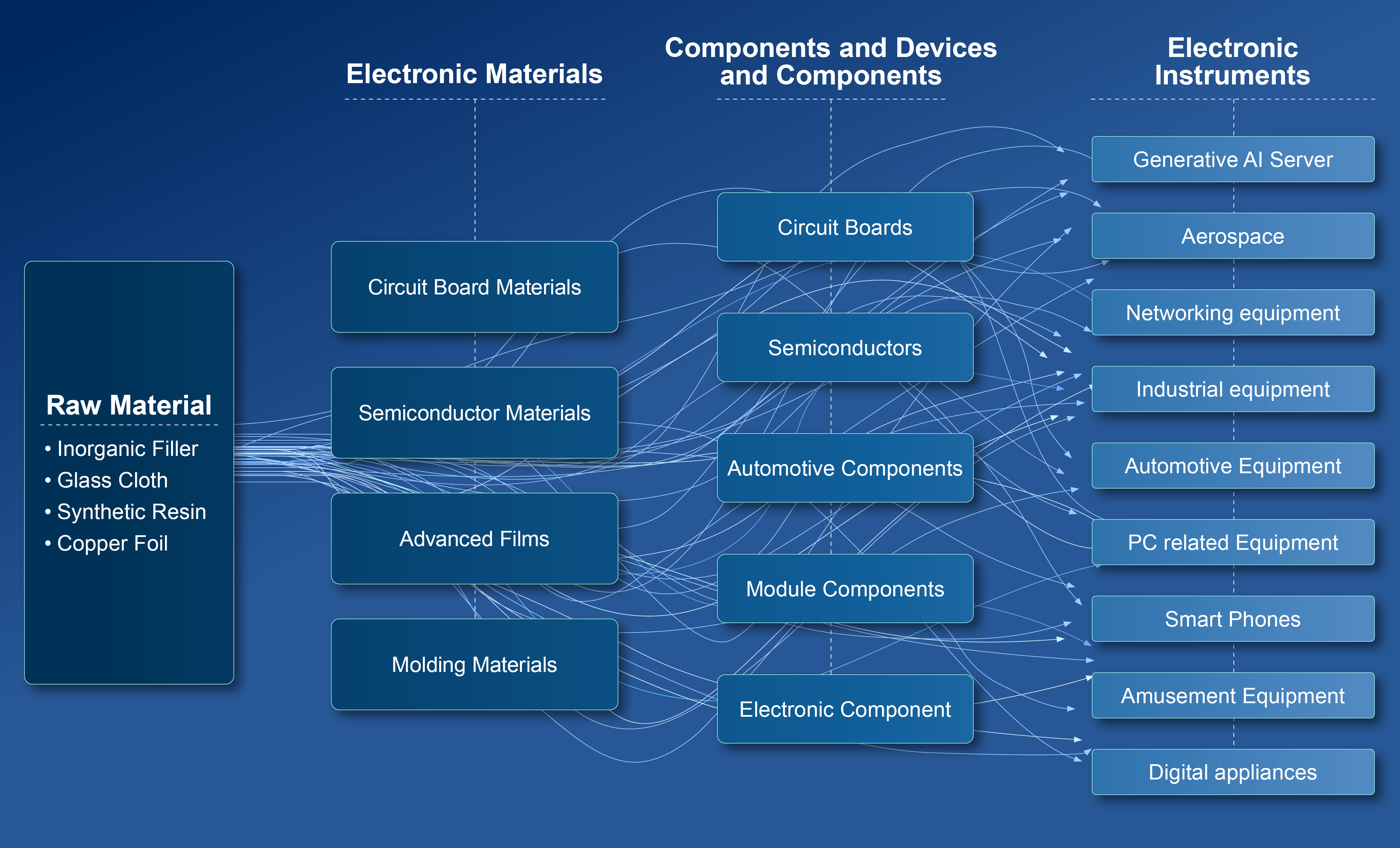 Electronic Materials Business Division being a part of Panasonic Industry is the only entity in the Panasonic Group specializing in materials. We will support the evolution of a "connected society" together with customers around the world through electronic materials developed from advanced material technologies, originated from the "Nerimono (resin synthesis)" technology at the time of our founding.